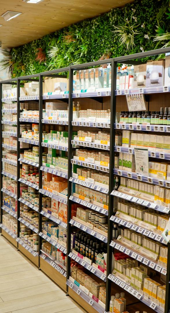 La plupart des pharmacies et parapharmacies proposent aujourd’hui un rayon dédié aux produits naturels, où vous trouverez des plantes médicinales principalement sous forme transformée en laboratoire (solutions buvables, gélules, comprimés, poudres, etc.).